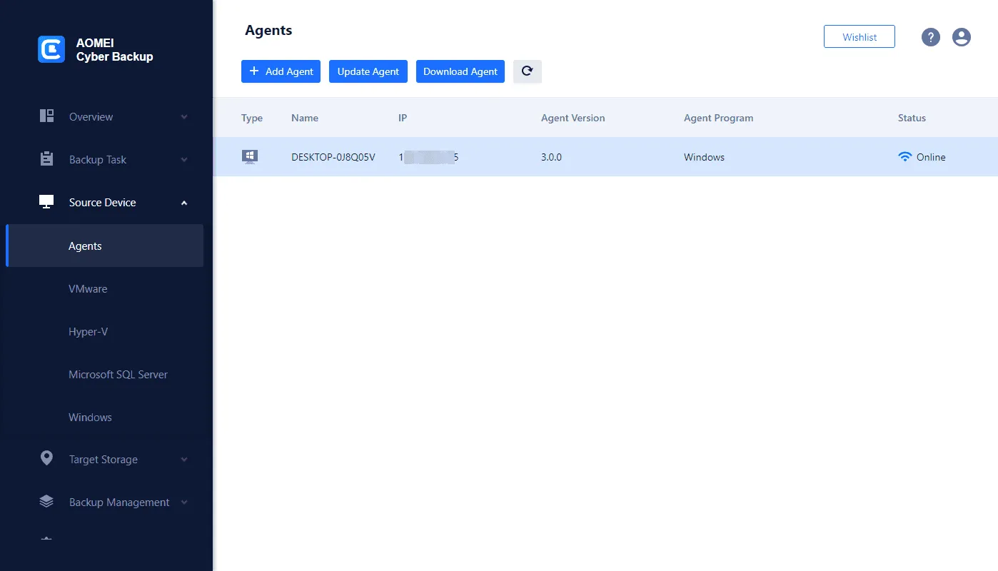 - Install AOMEI Cyber Backup on the site.