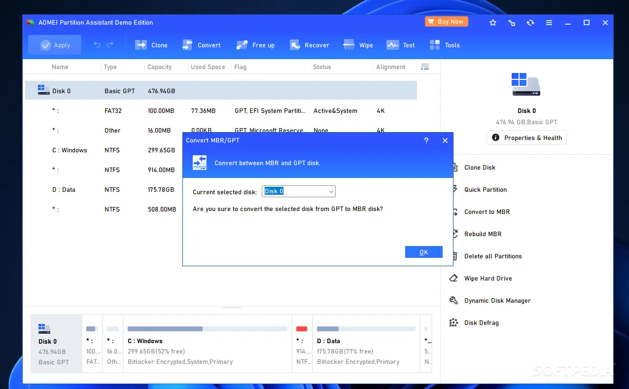 - Disk Conversion and OS Migration: Turn MBR to GPT, clone disks, and transfer operating systems to SSDs or new disks without having to install Windows or programs.