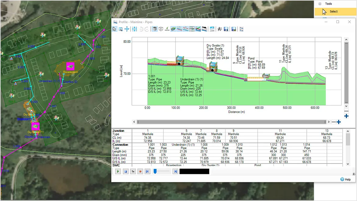 - Comprehensive Stormwater & Drainage Design: All users can easily model and analyze surface water drainage systems, including pipes, channels, ponds, and green infrastructure.