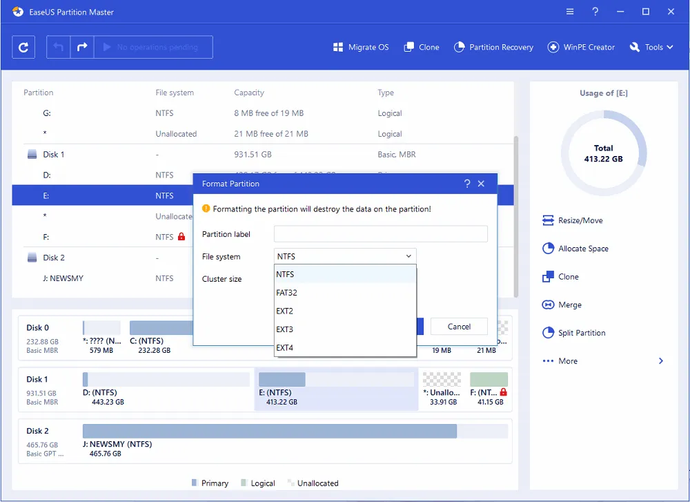 - Complete Data Storage Management: Change the size, shape, merge, move, and style of sections quickly with EaseUS Partition Master Technician. This doesn’t affect the data that is already there. With these tools, IT professionals can make the best use of data across multiple systems and keep everything running smoothly.